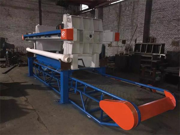 污泥注人泵可采用變頻式離心泵或是采用一臺高流量低壓力的污泥注人泵,與一臺低流量高壓力污泥注人泵(16MPa工作壓力的隔膜泵)并用,同時注入污泥,當污泥注滿面濾室,壓力_過O.6MPa時,低壓泵停止,高壓泵繼續(xù)注人污泥擠壓過濾脫水,以完成過濾脫水程序。
